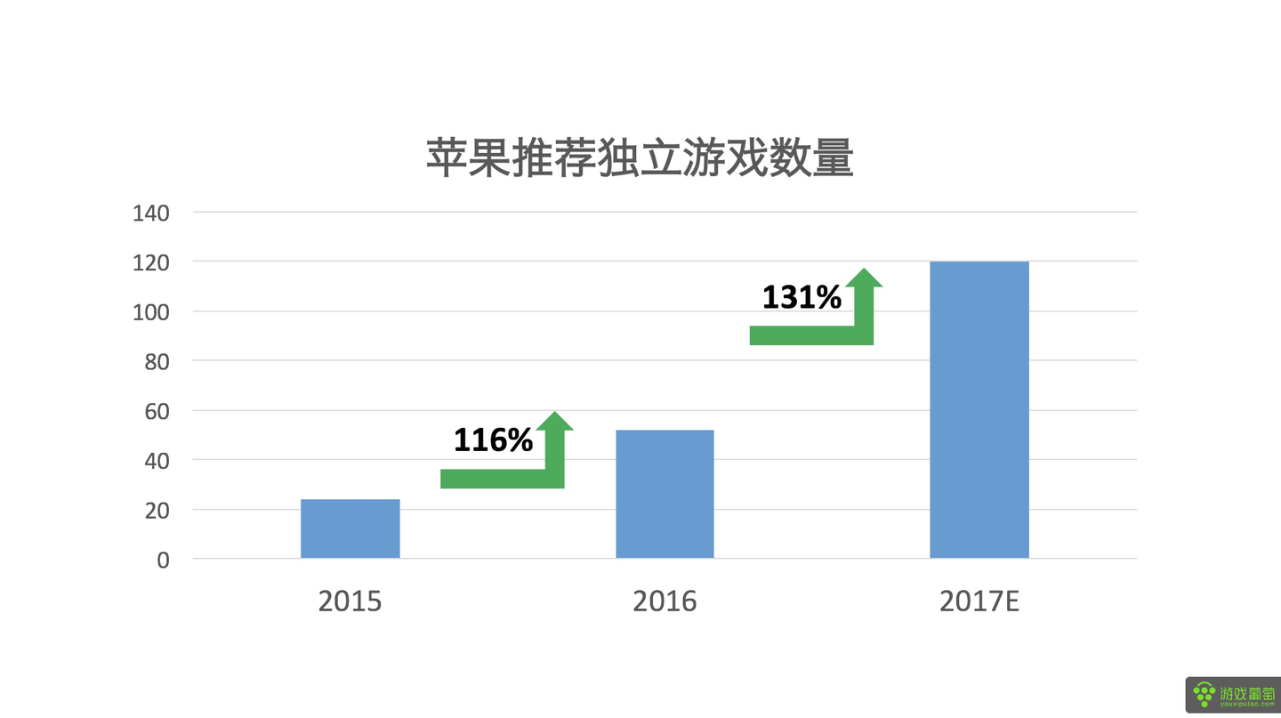 2015年是20款左右,2016年翻了一倍,现在2017年只过了一个季度,但数量已经赶上2016年半年,我们预测今年能达到120款左右——整个手游行业没有这么高的增长率,但整个独立游戏行业的增长率依然非常可观。