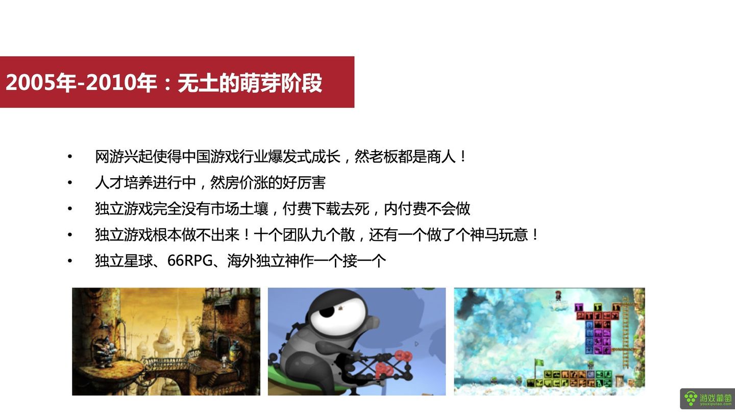 第二个话题,聊一聊中国独立游戏的发展过程。我说过一句话: