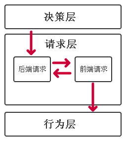 上面说到,决策层产生的输出是“请求”,请求是一种自定义的数据结构,包含所以该决策所需要传递的决策信息。那为什么要更新请求层呢?直接把当前请求传递给下一层不就好了吗?这一层的功能抽象,也是我在实践中的经验,总结一句话,“请求层”就类似于一个“防火墙”,由它来“过滤”,那些请求会被继续往下传递到行为层。