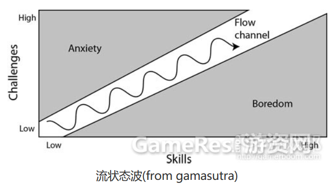 游戏难度不能过低,过低玩家会陷入无聊,难度不能过高,过高玩家陷入焦虑。导致玩不下去。良好的游戏需要有状态流,就是难度随着玩家技能熟练度的提升,逐渐升高。