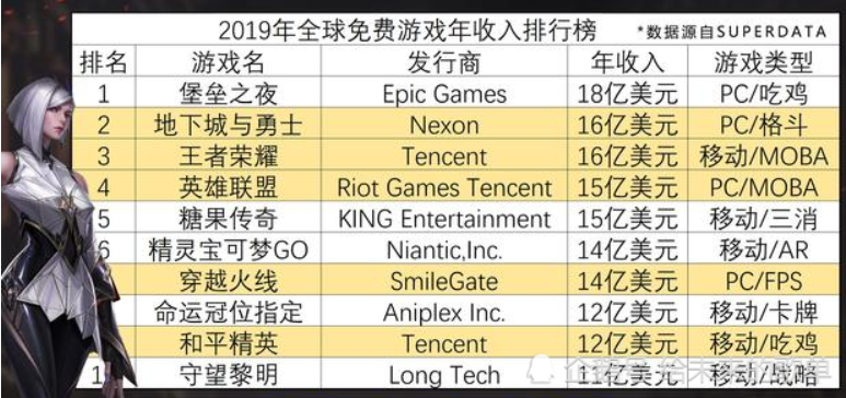 2019年,手游用户支出top 10中,网易和腾讯占了9家。