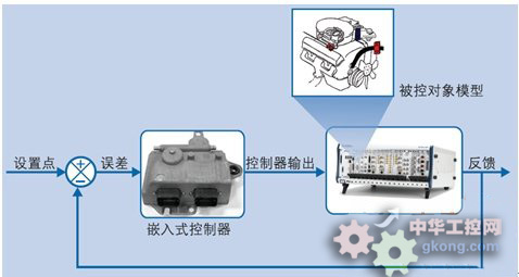 当测试系统的一部分运行在实时系统上时,就是我们所说的实时测试。实时测试提高了测试的稳定性和可靠性。一个典型的实时测试是硬件在环(HIL)测试,例如将受控对象的模型运行在实时系统上,从而对控制器产品或原型进行测试(图2)。再比如,在半导体协议感知测试中,协议感知接口也往往要基于实时系统实现。