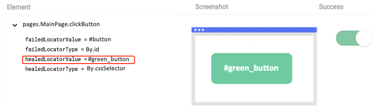 从上图可以看到,元素可以被正确定位到。Healnium会将正确的定位器保存下来,作为下一次测试执行的基准值。