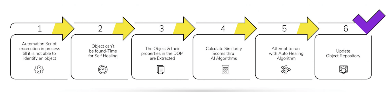 在运行测试时,它们会扫描应用程序的用户界面以查看是否存在任何对象。然后它们将这些对象与之前为自动化测试生成的应用程序模型进行比较。如果应用程序有任何更改,则有一种技术可以让测试适应并自动更新。这种能力被称为“自我修复”。属性更改是自动感知的,内部脚本在运行时通过自我修复进行自我修复。
