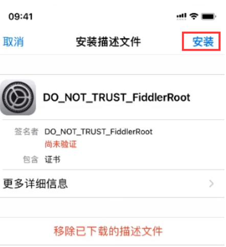 (2)点击FiddlerRoot certificate链接,按照提示下载安装证书,进入手机设置 -> 通用 -> 描述文件 ->安装描述文件