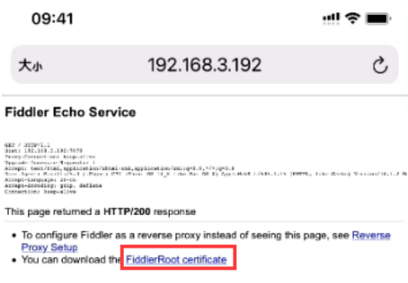 (1)在IOS设备浏览器上访问 http://192.168.3.192:7878,192.168.3.192为电脑端IP地址,7878为Fiddler监听端口号,所以通过这个地址我们可以访问到Fiddler内置的服务: