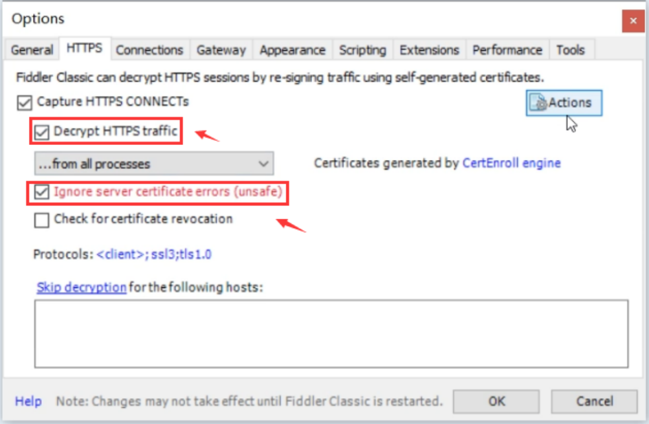 Fiddler Classic listens on post:表示Fiddler监听的端口号,数值可以随意设置,只要保证不和其他软件的端口号冲突即可