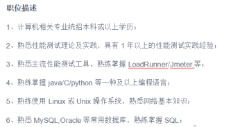 21.在某些程度上,软件测试已经和17.18年大有不同,软件测试绝对不是只有点点点,也不是任何人都可以入门的,像上图某公司的招聘要求就特别多,除了学历,专业外,还需要具备1年以上的性能测试实践经验,甚至在第四条也明确规定,要掌握一种以上的编程语言。