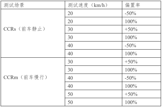 AEBCCR 系统包含两种测试场景:CCRs、CCRm,如下表描述: