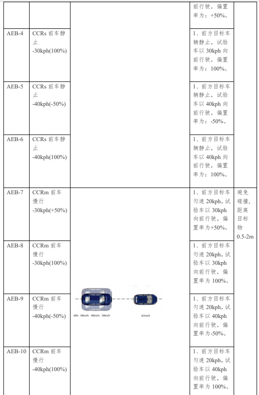 ①车辆追尾自动紧急制动系统(AEBCCR)
