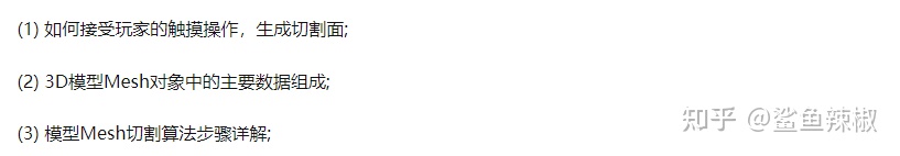 我们在开发游戏的时候经常会有一些特殊的游戏玩法等,需要涉及Mesh切割。比如3D切水果, 在地图的城墙上挖一个洞,今天给大家来分享一个Mesh切割的算法,帮助大家解决项目中需要用到的Mesh切割的问题。本文主要从一下几个方面来讲解Mesh切割。