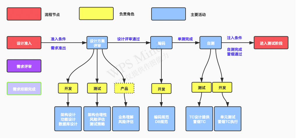 | 测试分析 | 从资源、业务要求角度设计测试完成所需计划。明确测试范围、测试目标、测试重点和难点,测试深度和广度、如何安排测试工作节奏、测试如何分层等 | 测试 |