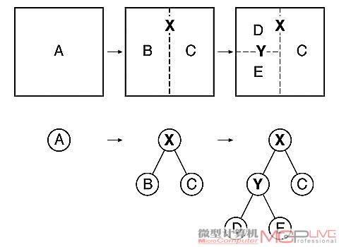 | 每个结点除了保存其两个子结点的引用以外,还可以保存一个或多个元素。上述过程是一个递归过程,直至每一子空间仅包含一个多边形为止。通过BSP树程序员可以选择性的渲染只被人们看到的多边形,而不必理会被遮挡或被覆盖的多边形。 |