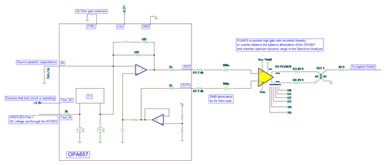 Figure 4: OPA857 with PGA870 used to adapt the OPA857 load into the Spectrum Analyzer.