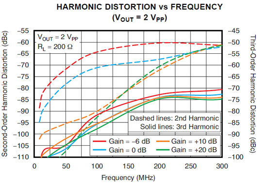 Figure 5: PGA870 Harmonic distortion for 200Ω load.