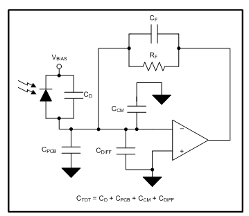 Figure 1 shows a complete TIA circuit with parasitic-input and feedback-capacitance sources.