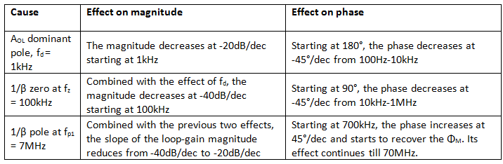 Table 2: Effect of poles and zeros on the loop-gain magnitude and phase
