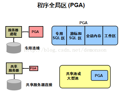 程序全局区 (PGA) 是包括某server进程的数据及控制信息的内存区。这是 Oracle server在server进程启动时创建的非共享内存,仅仅有该server进程才干訪问。