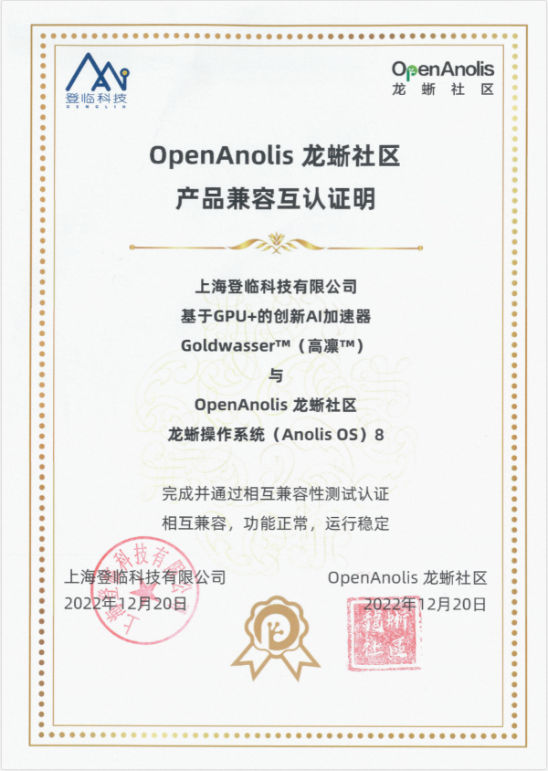 目前,登临科技创新通用 GPU—Goldwasser 系列产品与龙蜥操作系统(Anolis OS)8 完成并通过相互兼容性测试认证,双方进行严格测试后,结果显示:相互兼容,运行稳定。