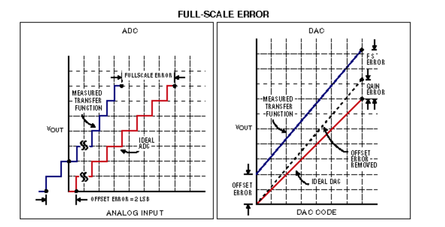图一Full-scale error for an ADC and a DAC.(From MaxiM)