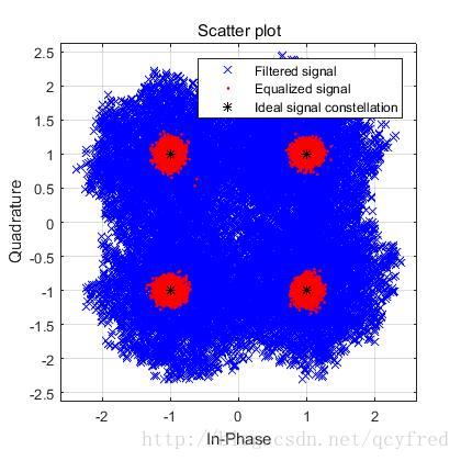 [symbolest,~] = equalize(eq1,rxCma,modmsg(1:trainlen)); % Equalize. % 均衡器obj,需要均衡的信号,训练序列