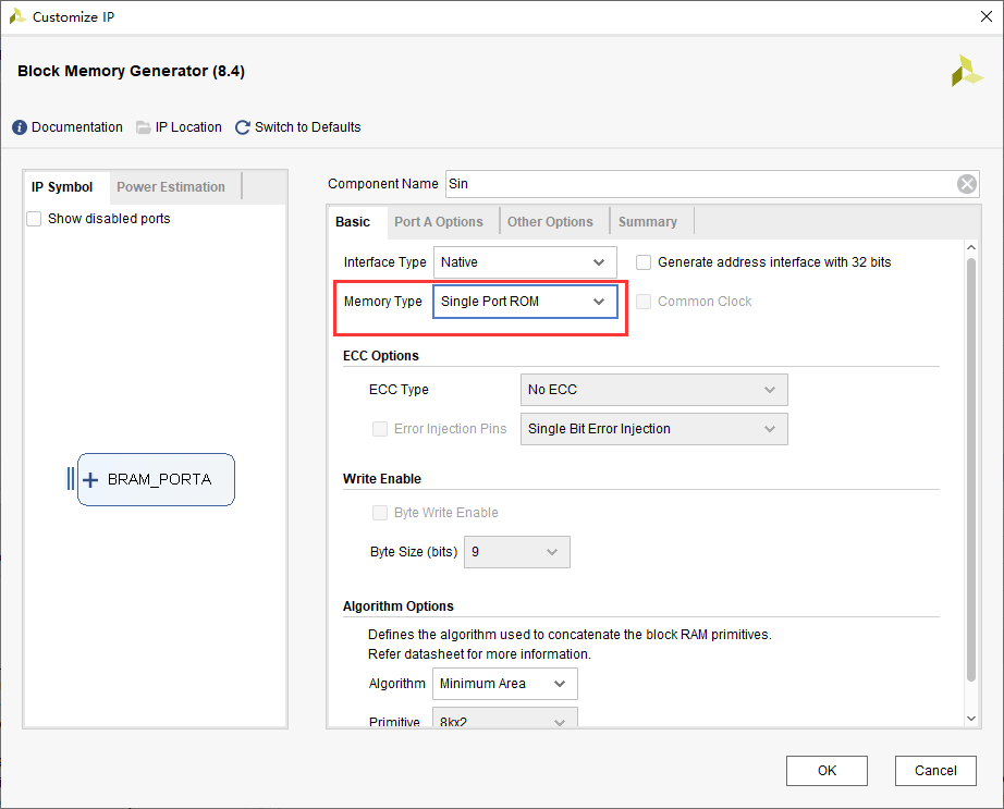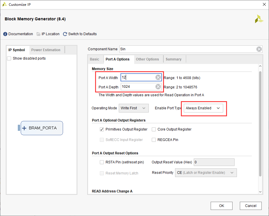 - 调用一个单口ROM IP核