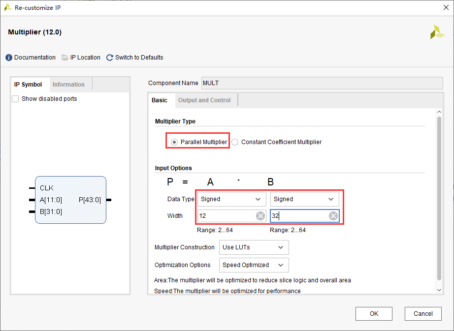 乘法器IP核配置如下: