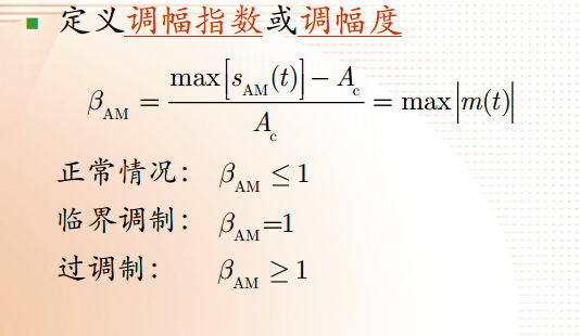 调幅指数:反映信号在载波幅度上的调制程度