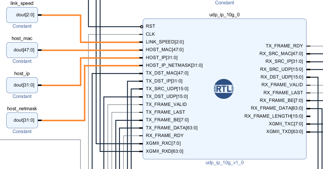本案例使用udp_ip_10g模块实现10G UDP协议栈与MAC层。