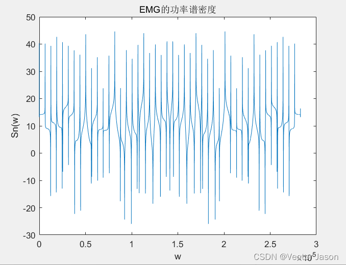通过分析EMG功率谱密度:根据维纳-欣钦定理,对EMG自相关函数进行傅里叶变换即可得到功率谱密度。由图可知功率谱密度变化剧烈,且幅值较大。