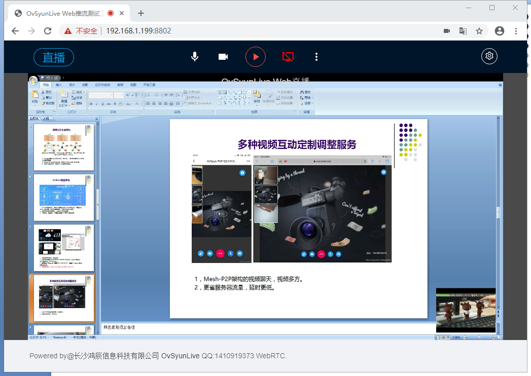 1,网页端用Webrtc实现,端流采集桌面和视频,技术实现混流。