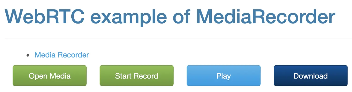 以上就是落寞砖头最近收集整理的关于WebRTC 之 MediaRecorder: 用你的浏览器录音和录像第一步:创建一个供演示的 HTML 文件第二步:处理这四个按键的的 click 事件参考资料的全部内容,更多相关WebRTC内容请搜索靠谱客的其他文章。