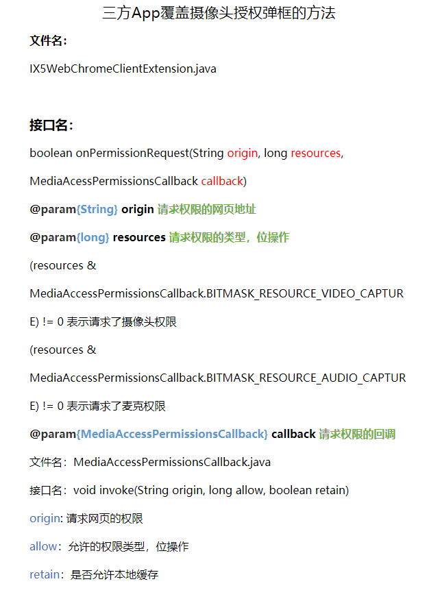 以上就是拼搏战斗机最近收集整理的关于X5内核使用webrtc——默认允许摄像头和麦克风权限的全部内容,更多相关X5内核使用webrtc——默认允许摄像头和麦克风权限内容请搜索靠谱客的其他文章。