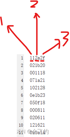 TXT中数的深度就是图层的大小row*col,数的宽度就是三个像素,每个像素点8bit,总共24bit,例如这里的第一个数112a2f,就是24bit的位宽。