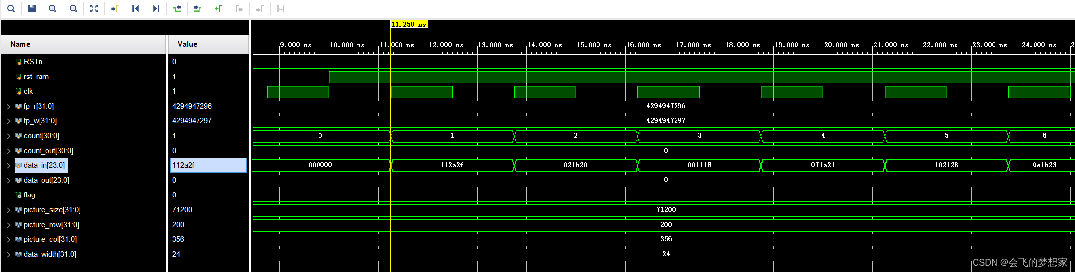 最后是利用$fscanf函数通过时钟驱动寄存器输出TXT每一行的24bit数据: