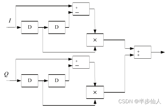 应用于QPSK系统的Gardner算法框图如图1所示。对于BPSK系统,Q路输出为0。图示1中的定时误差检测即采用的Gardner 算法。
