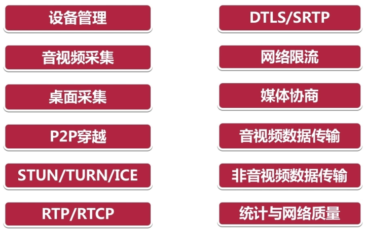第一部分为绿色区域,为webrtc库所提供的核心功能