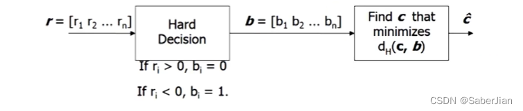 根据接收到的序列直接判0或1,得到码字 b, 接下来使用最小距离译码,得到我们的译码估计序
