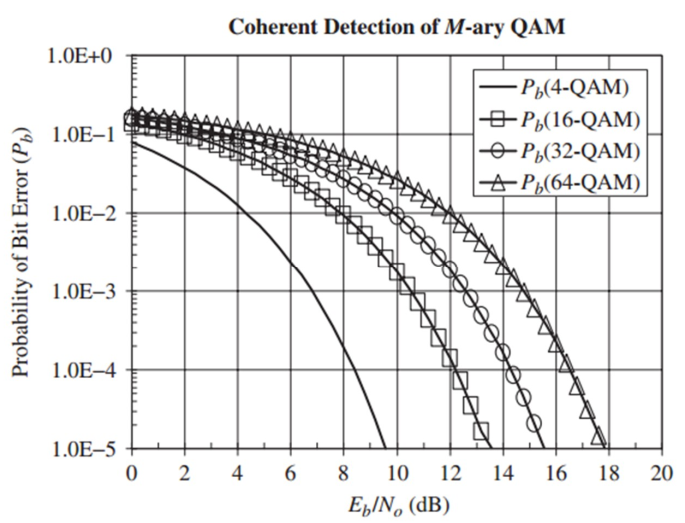 QAM调制方式的发送信号相位、幅度都会变化。在AWGN信道中,16QAM的ber性能优于16PSK,大约好4个dB。