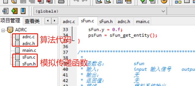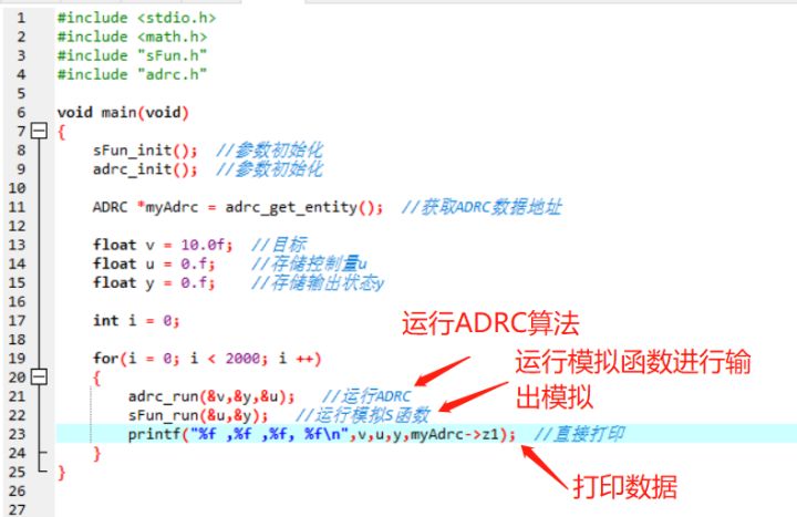 main.c的话,也比较简单,也就是调用ADRC算法代码,之后调用sFun函数来进行模拟:
