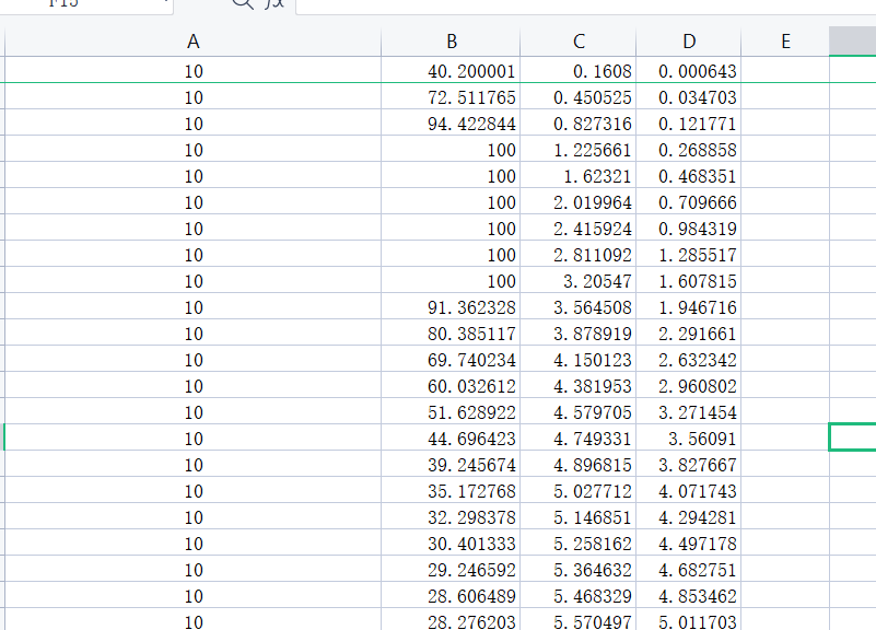 我打印的时候只打印了四个:目标,控制量,实际状态,观测器ESO的输出状态,这里需要用逗号分割开,不进行分割的话,后续不好在excel中查看。之后我们可以将数据复制过来,新建一个excel表格,然后复制: