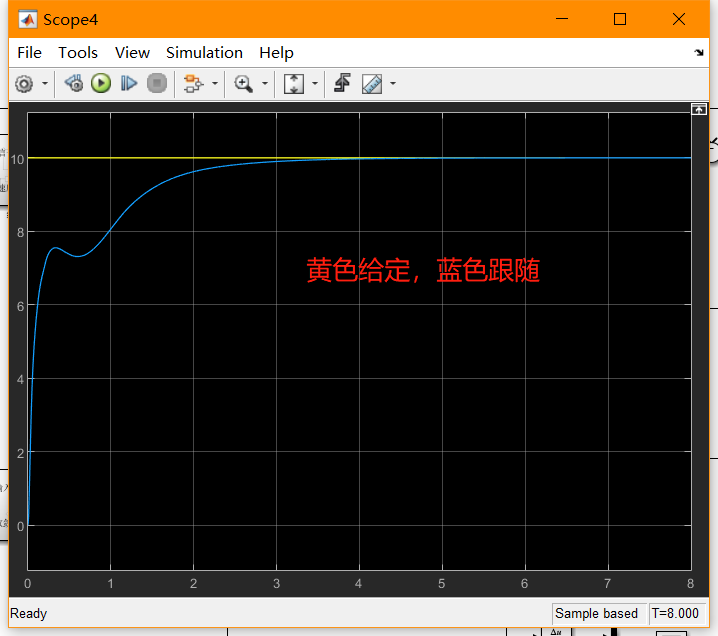 我们可以将原matlab的仿真打印出来对比一下,参数,采样时间,观测器参数,控制器参数,仿真时间我都设置得跟C代码一样,C代码中的循环次数是2000次,时间周期T写的是0.004秒,所以总的仿真时间应该设置成8秒: