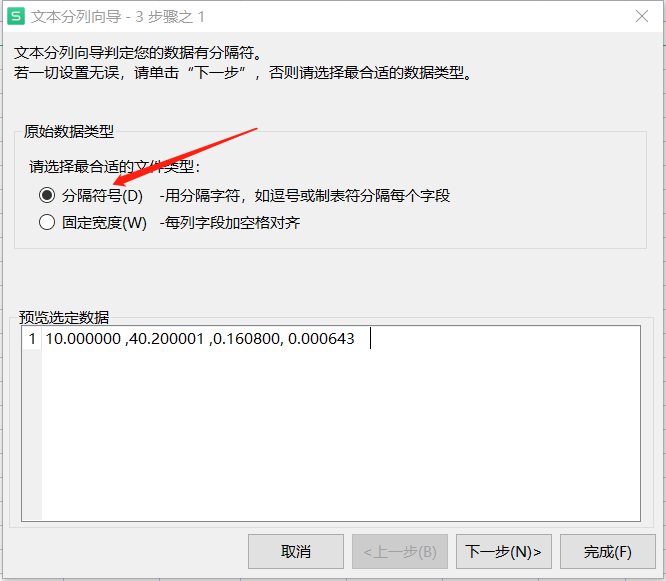 选择“逗号”: