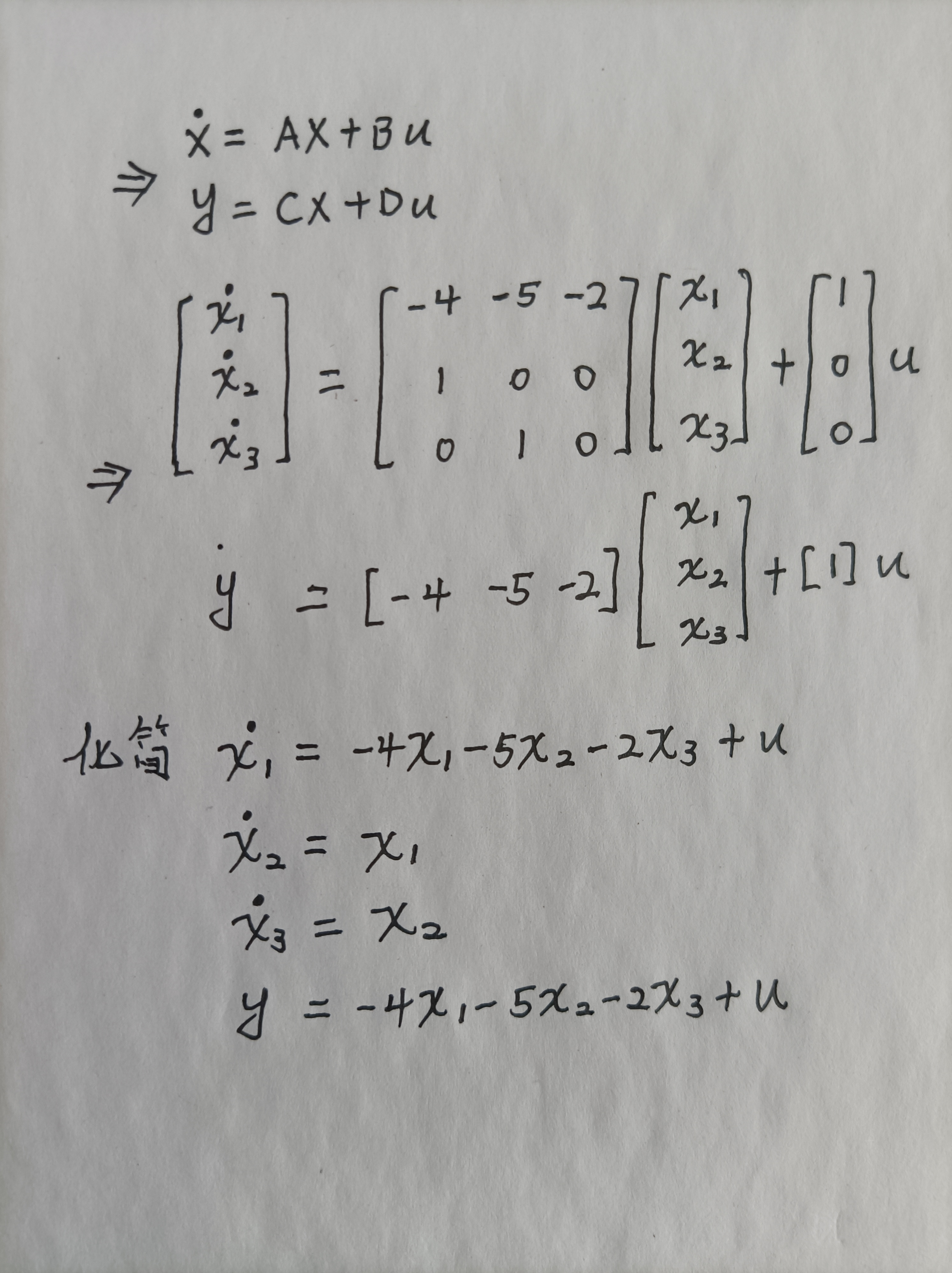 所以状态空间方程为