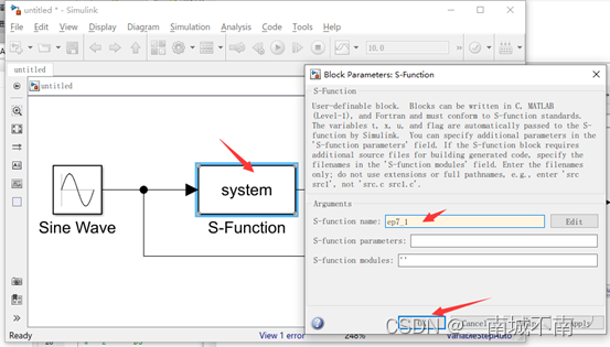 (7)双击S-function,设置参数。