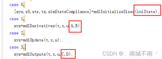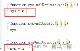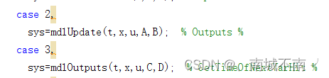 (4)mdlDerivatives、mdlUpdate、mdlOutputs子函数: