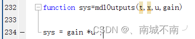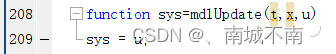 %函数的四个输入分别为采样时间t、状态x、输入u和仿真流程控制标志变量flag