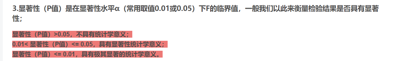 表示值分别是方差的平方,F值,P值(显著性),以及误差方差的估计值