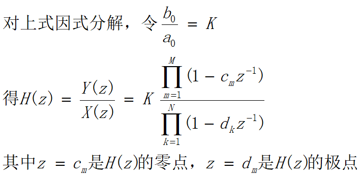 可见,除了比例常数K以外,系统函数完全由它的零点、极点决定