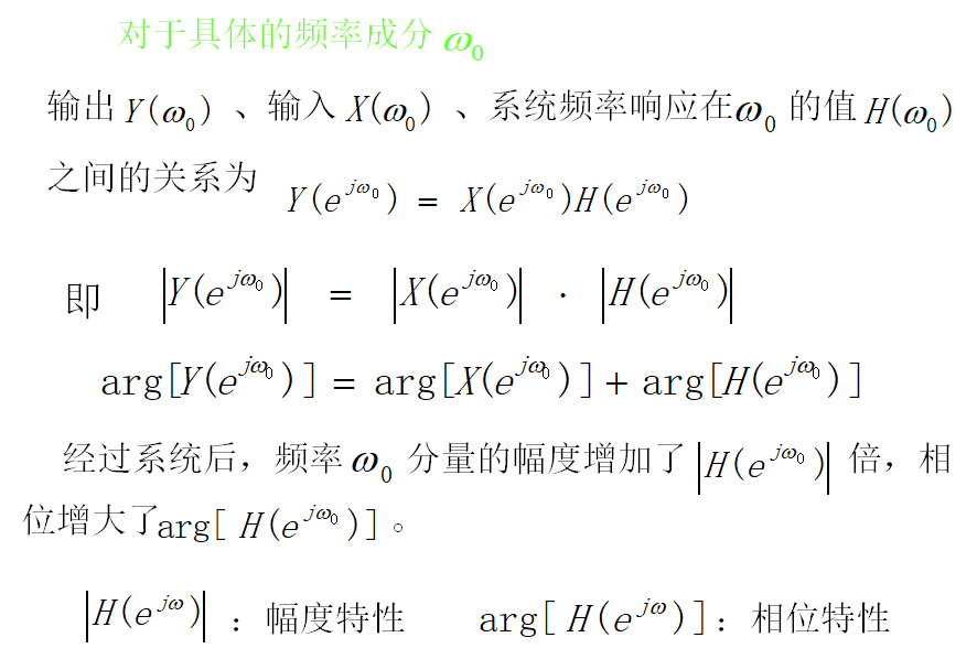 输出序列的傅氏变换等于输入序列的傅氏变换与频率响应的乘积。